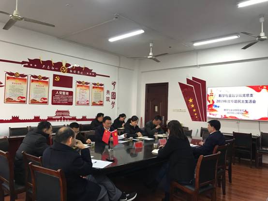2019年12月9日下午,数学与金融学院党总支在致远楼416召开2019年度专题民主生活会,五位党政领导班子成员,教工、学生支部书记参与会议,学校纪委书记杨鑫铨、学校纪委副书记江彤莅临会场指导,会议由我院党总支书记阳立新主持。