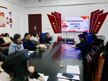 2019年12月31日,数学与金融学院党总支在致远楼416举行2019年度双述双评大会,会议由党总支书记阳立新主持,全体党员和所有教职员工参加。