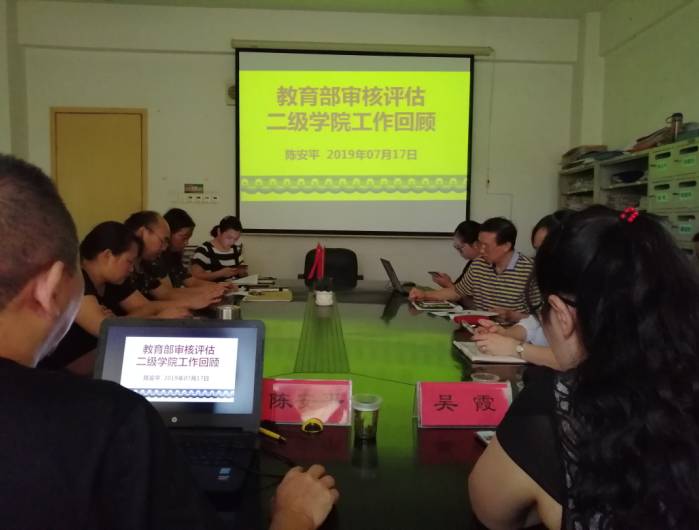 7月17日上午8:30,数学与金融学院在致远楼413召开了评估经验介绍见面会,会议邀请了湘南学院数学与金融学院陈安平院长、吴霞副院长做审核评估工作经验报告,数学与金融学院全体老师参加了此次会议,会议由陈国华院长主持,在会上,老师们认真听取了陈安平院长、吴霞副院长本科教学工作审核评估工作汇报,并展开了双边交流讨论。