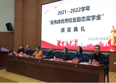 凌艳平在致辞中对袁伟峰在母校设立奖学金表示感谢。她希望全体学生常怀感恩之心,常思报国之情,以校友的奖励为动力,努力学习,再创佳绩。
