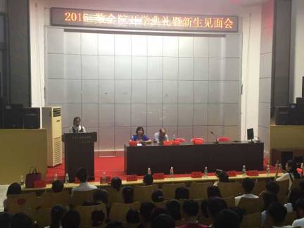 2016年9月20日晚,数学与金融学院于匠成楼报告厅举办了2016年数学与金融学院开学典礼暨新生见面会。参加本次会议的有:院长陈国华、副院长李炳君、书记高平、副书记周兰、五位辅导员、新生班主任、各专业负责人老师、16级代班及所有新生。会议由副书记周兰主持。
