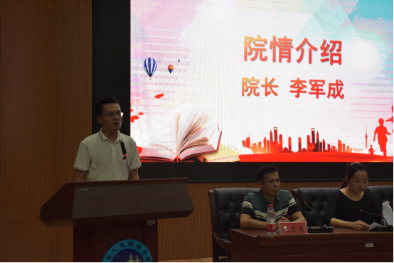 院长李军成做院情介绍,回顾了学院教育教学管理的喜人成果,展示了学院的巨大变化,充分肯定了师生的优异成绩,对学院的发展提出了指导性意见,对同学们的学习也指明了努力的方向。