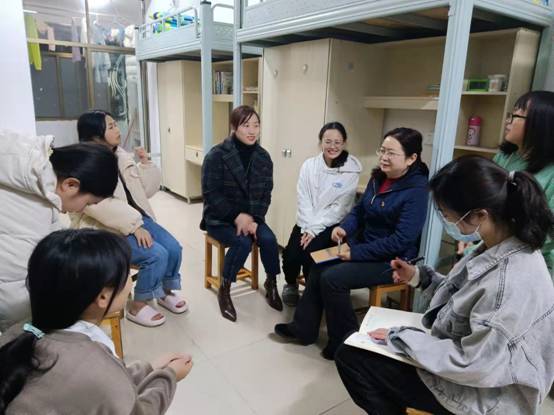 1117日晚,学校纪委书记凌艳平深入数学与金融学院“三联系”寝室宣讲党的十九届六中全会精神,并关切询问同学们专业学习、校园生活等方面情况。