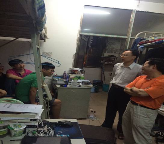 2015年5月19日晚上9:30,数学与计量经济系由书记高平、主任陈国华、副书记周兰、副主任李炳君携两位辅导员、毕业班班主任和部分学生干部分三组深入毕业生寝室,与毕业生面对面沟通,提供毕业工作咨询与服务。