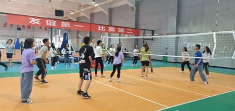经过两个星期的激烈角逐,全院共四支队伍晋级总决赛。决赛场上,比赛双方展开了猛烈的比拼。有的队员以头传球,或者腾空扣球,又或跳起拦网,每一次精彩的发球与得分都引来阵阵欢呼。场外的拉拉队加油声、呐喊声不断。整个比赛现场气氛活跃,掌声欢呼声此起彼伏。