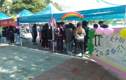 2017年11月,为了激发同学们的公益热情,提高大学生的自身修养,数学与金融学院团总支青工部组织了以“行走中的公益”为主题的志愿者活动。