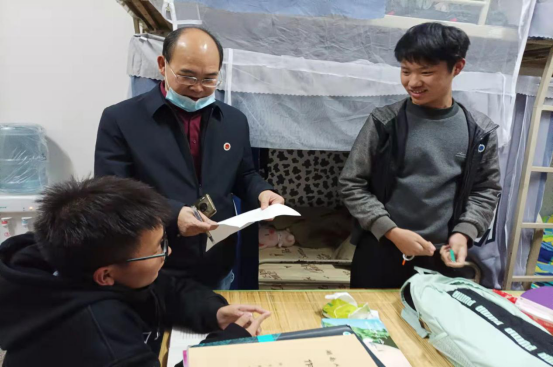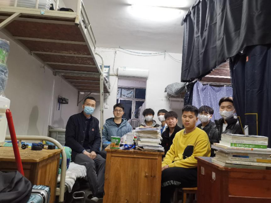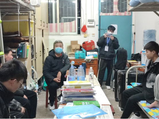 各位领导老师走访了“三联系”寝室,与同学们展开了亲切的交流。详细询问同学们开学以来在学习和生活上的情况,耐心倾听同学们疫情期间日常生活中的困惑,叮嘱学生时刻谨记做好自身防护,正确佩戴口罩和校徽,积极配合学校疫情防控工作,细心指导和鼓励同学们用积极的心态面对疫情。最后,各位领导老师为同学们宣讲了国家两会精神,寄语同学们一定要珍惜现在的生活,坚定正确的政治方向,关注国内外时事,思想上和党组织保持高度一致,在新形势下更好地发挥先锋模范作用。