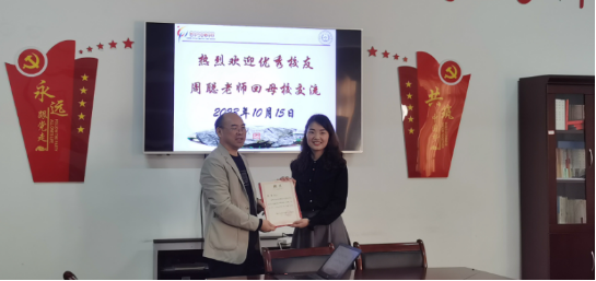 最后,学院党总支书记陈国华教授代表学院为周聪老师颁发了外聘教师聘书,对活动进行了总结:祝贺周聪校友取得的成绩,感谢校友对母校的关心和支持,学院将在今后的工作中,进一步做好人才质量培养,为社会输送更多优秀的人才。