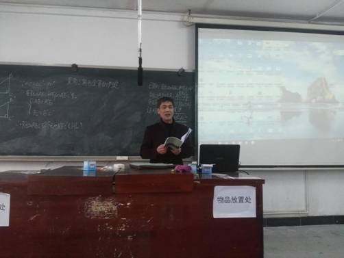 2017年12月26日下午,数学与金融学院在致远楼412教室举行2014级数学与应用数学专业(教育方向)实习汇报教学比武。我院院长陈国华、书记高平、副院长李炳君、校级教学督导杨涤尘、带队教师蒋馨初、应数教研室负责人龙承星及2015级、2016级应数专业(教育方向)全体同学参加了此次实习汇报教学比武。