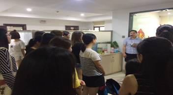 李总监细心的带领学生参观了各个部门以及它们的职责,首先从前台到客户服务部,风控部,信息技术部,以及投资分析部等部门。同学们认真的听李总监和各个部门负责人的细致讲解。