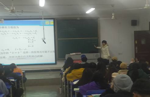 12月2号上午,公共数学教研室王立胜老师在致远楼409上了一堂公开课---《线性方程组解的判定》,校级督导杨涤尘老师,李韶华老师,公共数学教研室主任刘纯英,本教研室成员陈国庆老师,梁琼初老师,贺佩玲老师,龙志文老师参与了听课和评课活动。