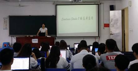 首先,谢淳老师简要介绍了微课的基本理论,然后现场演示了软件安装和基本使用方法,在讲座的最后,谢老师向学生展示其获奖的微课作品。讲座结束后,谢老师又现场对同学们的微课制作进行了指导。活动结束后,很多学生已经基本掌握了制作一堂微课的流程,不少同学纷纷表示,回去后将选择适当的内容,录制一堂属于自己的微课。