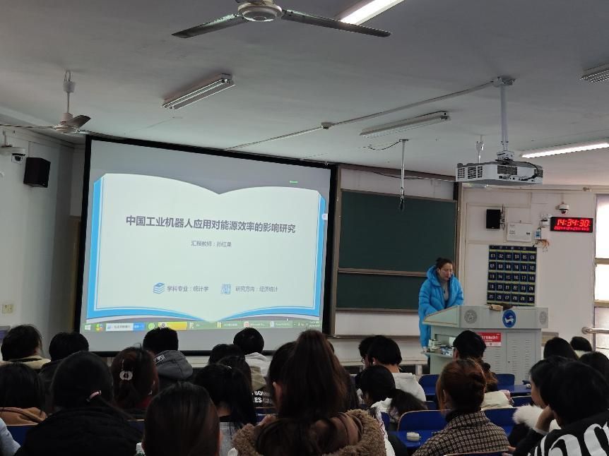 肖萍博士以《机器学习算法下区块链驱动供应链金融信用风险评估》为题,介绍了中小企业融资难的背景,引出供应链金融的概念,并解释了区块链在供应链金融中的作用以及所采用的统计方法和机器学习方法,为学生开展科学研究提供了思路和启发。