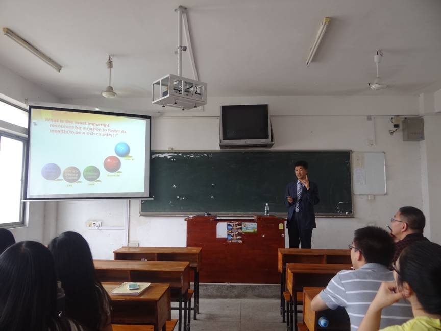 6月11上午,韩国群山国立大学Yong-taek Lim教授给我系金融工程专业的学生作了一个主题为Social Capital and Our Future的学术报告。林教授从什么是社会资本、社会资本的三种形式、为什么要重视社会资本三个方面给同学们做了讲解。林教授还结合当前韩国爆发的中东呼吸综合征(MERS)谈了社会资本的重要性。教导我们的学生们在个人奋斗通往成功的路上要关注自己的亲人、朋友和身边的人。多和他们交流,分享快乐,积累自己的社会资本,提高自己的幸福感。(李炳君供稿)