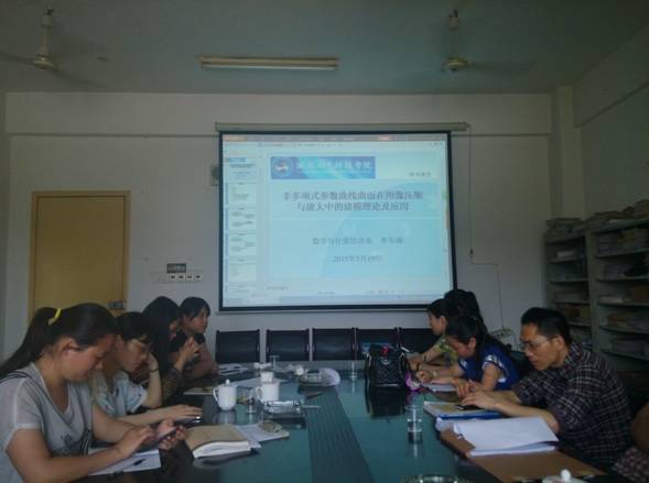 报告上,李军成博士系统介绍了非多项式参数曲线曲面在图像压缩与放大领域的现状及他本人的有关研究成果,并对未来的研究方向进行展望,以此希望能多与我系青年教师探讨交流,以获得更多的研究成果。最后,陈国华主任对报告作了总结,并鼓励我系青年教师多做科研、做好科研。