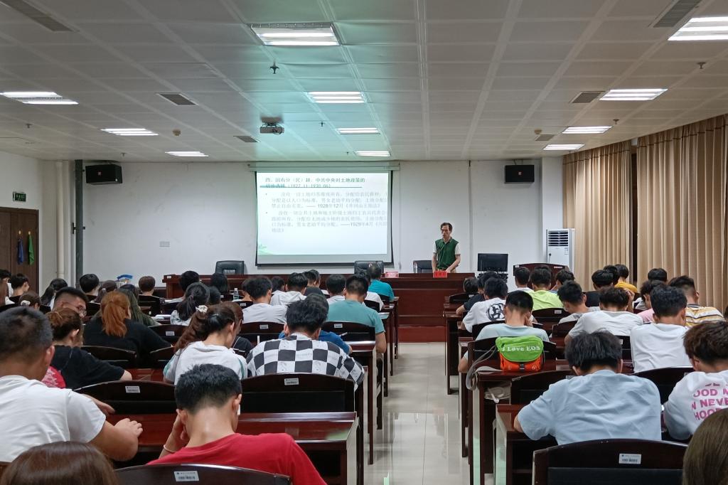 为庆祝中国共产党建党一百周年,进一步宣传阐释好党的创新理论和中国特色社会主义理论,引导广大青年学生学党史、悟思想、强信念、跟党走,深入推动党史学习教育走深走实。湖南省中国特色社会主义理论体系研究中心beat365中文官方网站基地、湖南省党的创新理论研究基地beat365中文官方网站基地在近期联合举办“学百年党史,庆百年华诞”系列讲座。6月17日晚,系列讲座第四讲在图书馆415学术交流中心开讲,第四讲由我院曾耀荣教授主讲《一切为了广大农民的利益:中国共产党从土地革命到土地改革的选择》,我院党总支书记李伶主持,中特理论基地秘书周浩博士、基地主要研究成员及beat365100多名学生参与讲座。