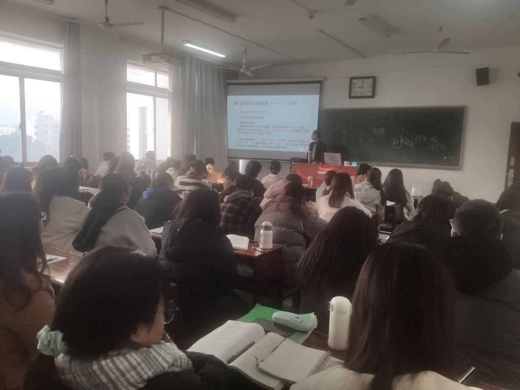 曾耀荣教授就古代中国地方行政机构问题主要讲述了西周至春秋战国时期地方行政制度的变迁。课上曾教授条理清晰,紧紧围绕西周、春秋、战国三个时期地方行政机构进行讲解,并引导同学们思考其地方行政机构的不同之处,将晦涩难懂的西周至春秋战国时期地方行政制度的变迁问题进行深入浅出地剖析,充分调动了学生们学习的积极性。同学们专心听讲,展现了浓厚的兴趣和饱满的精神状态,加深了对西周至春秋战国时期地方行政制度变迁的理解。课后,领导、老师们进行了评教活动,肯定了曾教授的课堂,并针对本次课堂提出了自己的看法、收获体会以及改进意见。