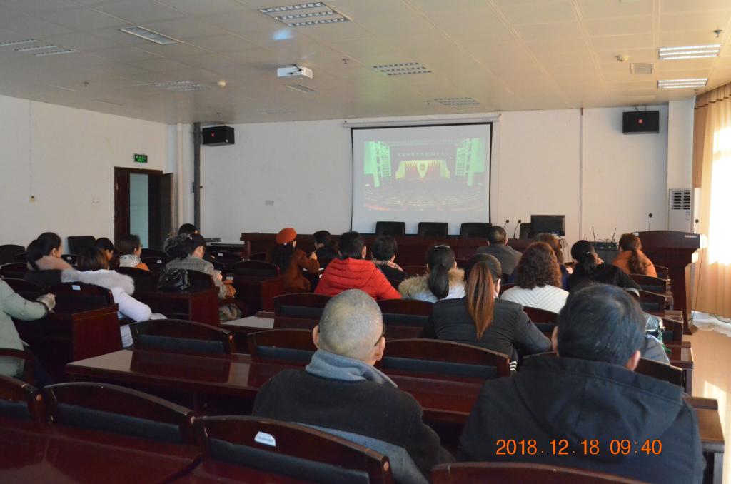 12月18日上午10点,图书馆全体职工在415会议室观看了庆祝改革开放40周年大会。