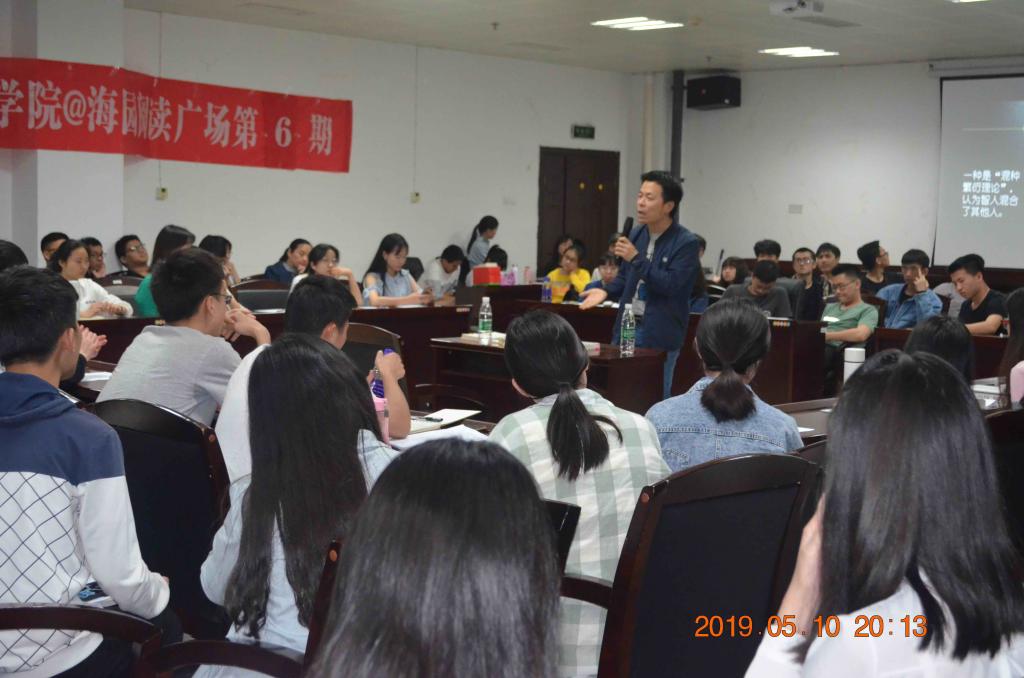 2019年5月10日晚上7:30,由beat365中文官方网站图书馆主办、读者俱乐部和青马读书会共同承办的第6期海园阅读广场之海园开卷活动在图书馆415学术交流中心举行,马克思主义学院的谢科峰老师与来自全校的110余位学子一起分享了历史学经典《人类简史》。