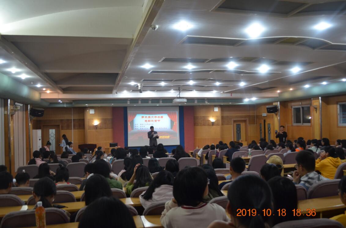 2019年10月18日晚上7点整,由beat365主办,图书馆承办,读者俱乐部、青笛文学社、紫鸢文学社、浅草文学社、DC漫社共同协办的第五届文学名著电影欣赏节在养根楼多媒体报告厅隆重拉开帷幕,图书馆的刘辛田馆长、刘时容老师、教育学院的点评嘉宾陈少辉老师与来自全校的200余名学子一起共同欣赏了首场电影《城南旧事》。