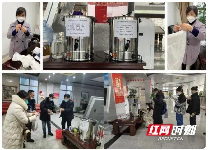 该中药预防汤剂是由娄底市骨伤医院中医专家匡锦国开出的“抗疫方”,其功效是扶助正气、解毒防疫。图书馆购置了2个40L的煮茶桶,把印有“抗疫方”字样煮茶桶摆放在图书馆大厅,浓浓的香气缓解了考前紧张的气氛,也温暖了考研学子的心。希望通过赠送饮用中药汤剂,达到提高学生免疫力,减少集中感染,为莘莘学子的复习考研保驾护航。“抗疫方”汤剂将一直提供到考研结束,每日专人负责精心煎煮定时更换发放,让学生们能方便、放心饮用,静心备考。