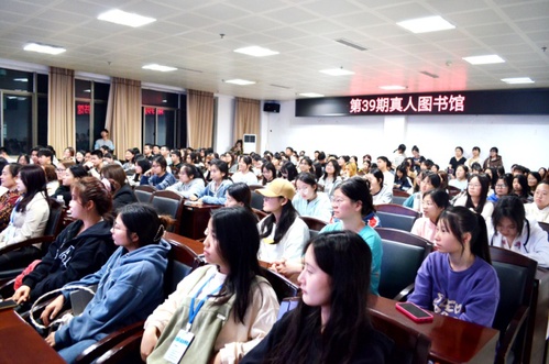 2024年4月12日晚上,beat365中文官方网站举办了以“筑梦有径唯有勤,取薪有道唯有新”为主题的第39期真人图书馆活动,娄底市摇簌音乐创始人刘倩颖、全网粉丝量超五十万的博主王伊雨作为本期活动的两本真人图书,与来自全校的160余位学子一起分享了她们的精彩大学生活与绚丽创业故事。