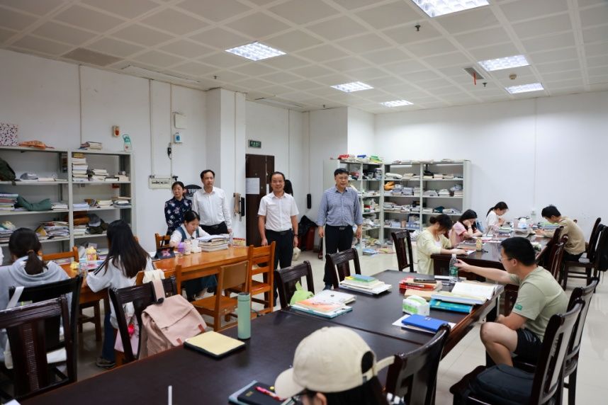 6月5日下午,校党委副书记、校长盛明科深入图书馆调研指导工作。校党政办副主任彭正华、宣传部副部长田密、计划财务处副处长王卫一参加调研会议。