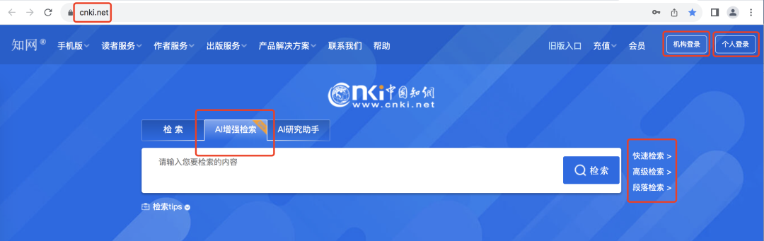 (1)访问入口:通过知网首页AI增强检索进入。