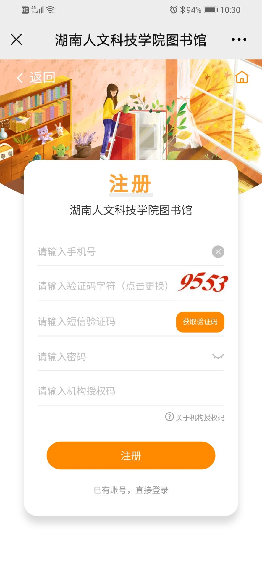 方式二:手机移动数据扫描下面二维码,新用户注册,按下图提示进行注册,机构授权码输入rwkj即可