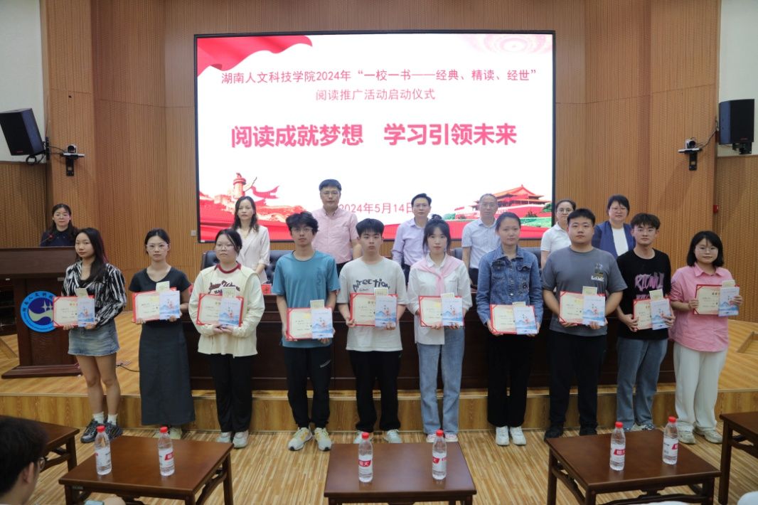 图书馆副馆长申彦舒宣读了2023年“一校一书”阅读推广系列活动获奖名单。会上,对获湖南省教育厅优秀读书心得奖的学生、湖南省高校图工委书香班级及书香班级优秀指导老师、学校“一校一书”阅读活动优秀组织奖、“十佳借阅之星”等获奖单位和个人进行了表彰。来自研究生教育教学部2023级农村发展专业的吴莞萱同学作为学生代表发言。