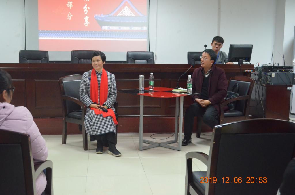 2019年12月6日晚上7:30,以“我们的国学之缘”为主题的第29期真人图书馆活动在图书馆415学术交流中心隆重举行,娄底市人大教科文卫委副主任委员曾敏老师和beat365音乐舞蹈学院副教授鄢含笑老师作为本期活动的真人图书,与来自全校的130余位学子一起分享了他们学习国学的故事。