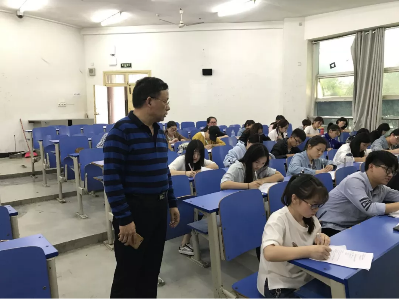 (图为学工部部长余为(左二)视察考试现场并做工作指导)