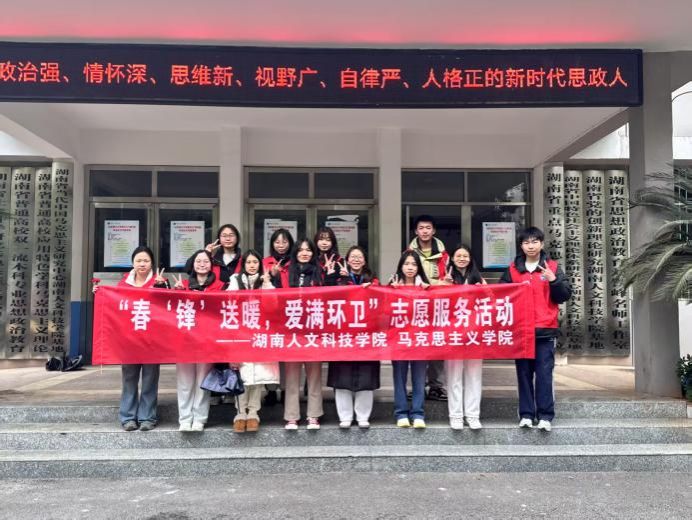 3月8日上午,马克思主义学院团学会青工部全体成员与学院爱心志愿者前往校园周边地区开展了“春‘锋’送暖,爱满环卫”志愿服务活动。