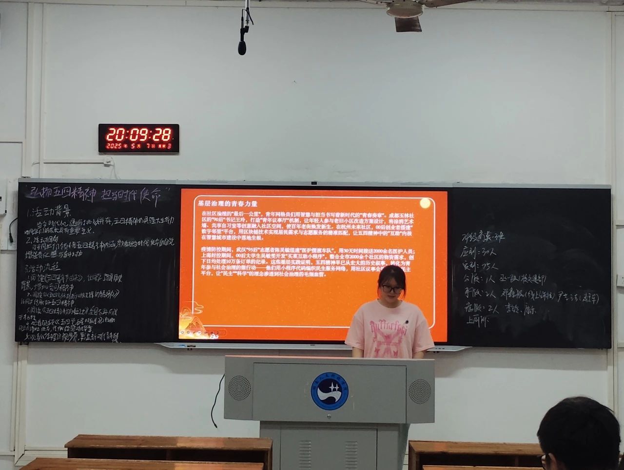 本次团课采用线上线下结合的形式,带领同学们深入学习五四精神。活动从研读《五四青年节的由来》开始,帮助大家了解五四运动的历史意义;随后通过《从五四先驱到新时代先锋的青春接力》文件,激发新时代使命担当;《五四精神的永恒之火》的学习则让同学们体会到五四精神的当代价值。最后,《五四觉醒时刻》和《少年中国》视频的观看,深刻感悟青年一代的使命与奋斗精神,进一步坚定了青年学子爱国奋斗的信念。