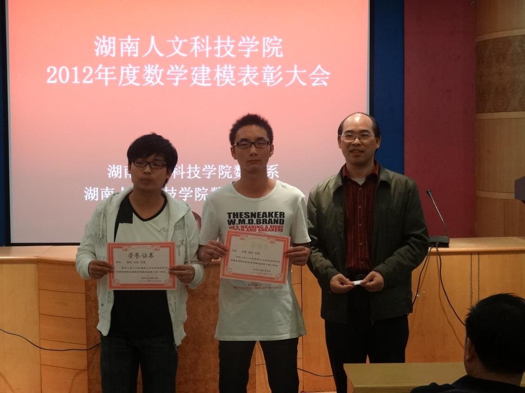 2012年10月19日晚7点整beat365数学系的数学建模表彰大会在养根楼正式开始。出席大会的有数学系的各位辅导员及全体学生。