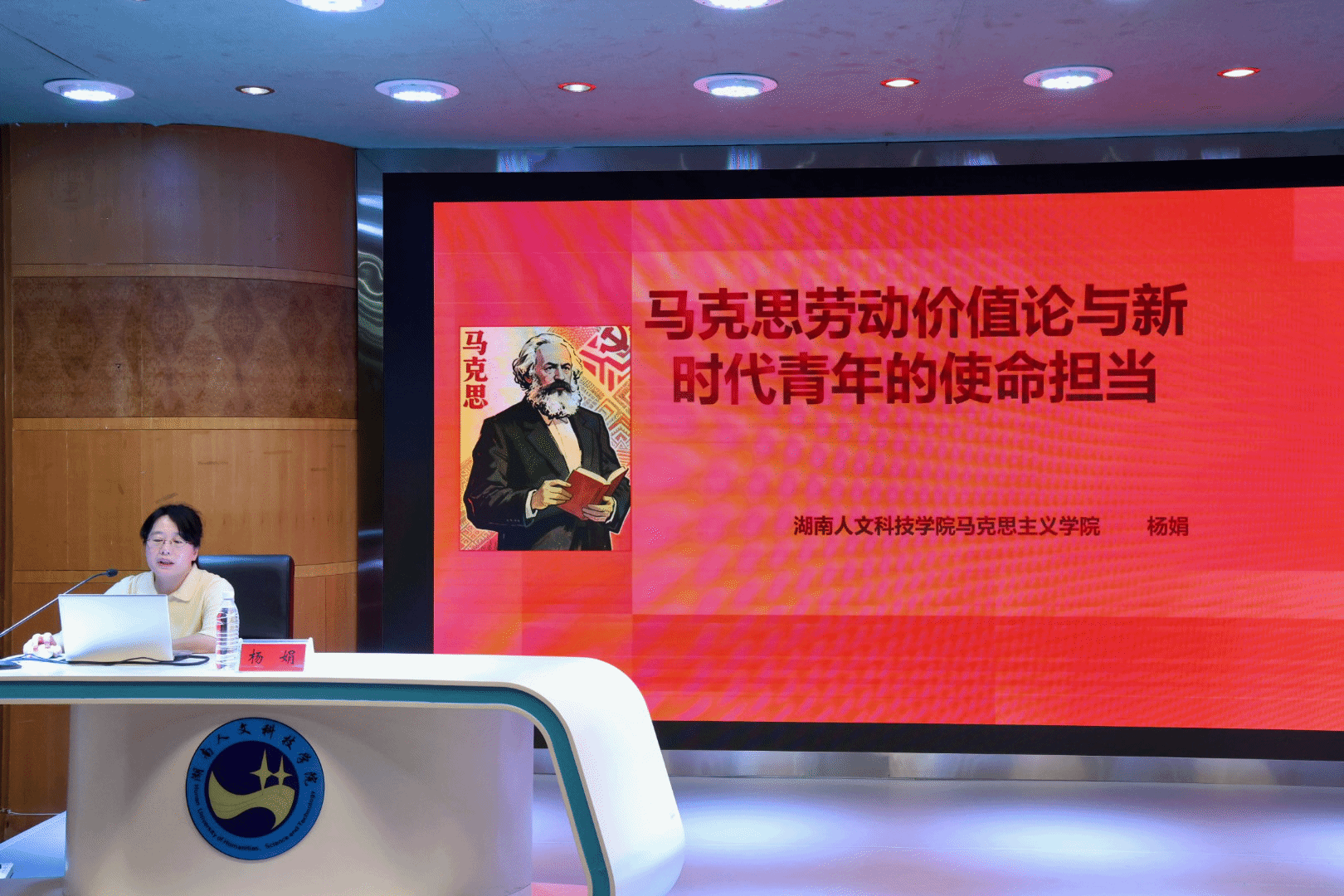 5月16日晚,马克思主义学院杨娟教授于养根楼报告厅为第七期“青马工程”骨干培训班全体学员开展题为“马克思劳动价值论与新时代青年的使命担当”的主题讲座。讲座由助理班主任宾易遥主持,第七期青年马克思主义者骨干培训班全体学员参加。