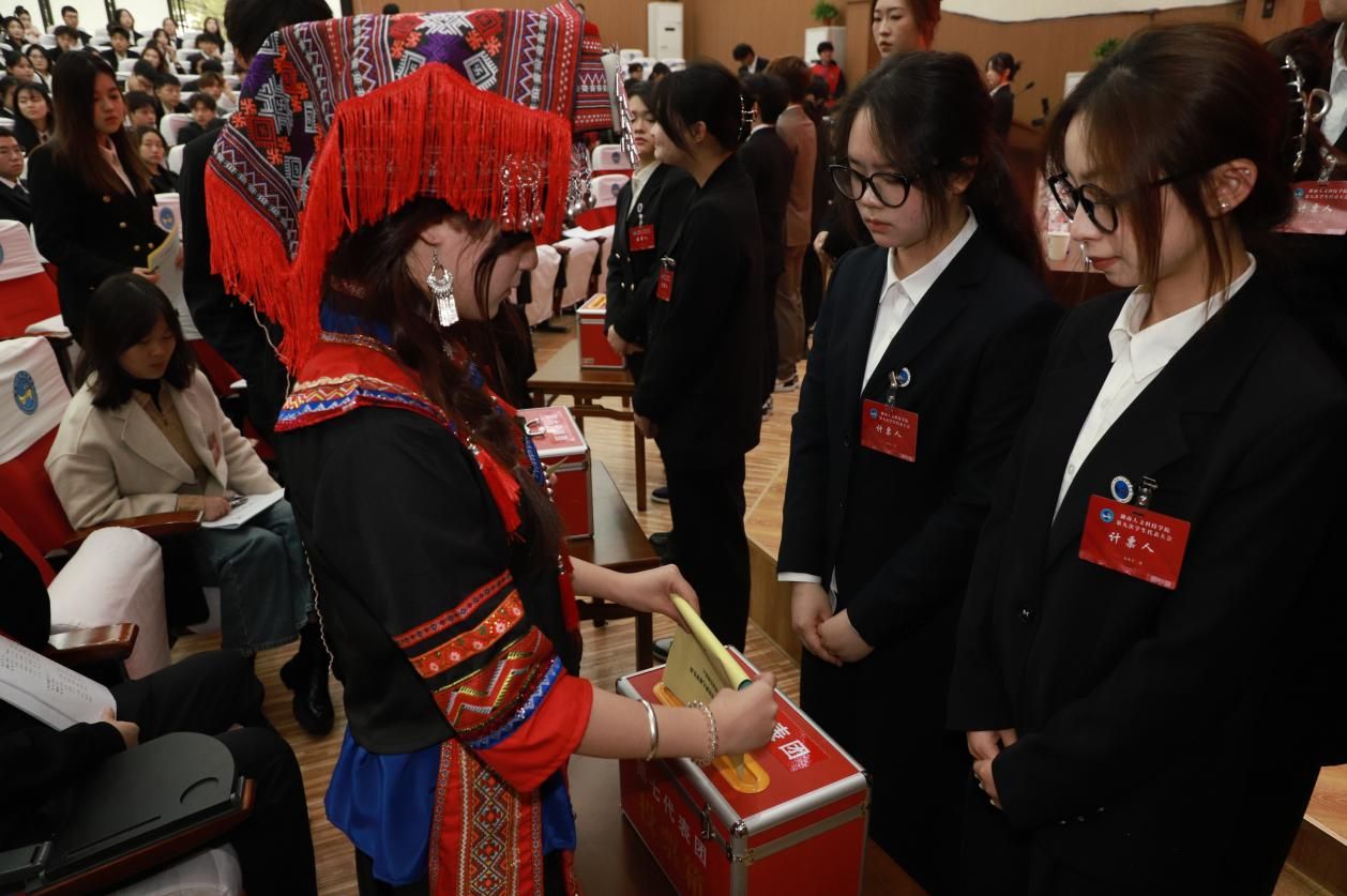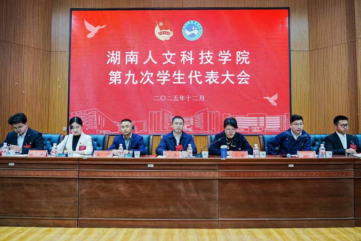 在全校上下深入学习贯彻党的二十届四中全会精神之际,12月19日至20日,beat365中文官方网站第九次学生代表大会在匠成楼报告厅顺利召开。校党委委员、副校长陈勇,湖南省学生联合会驻会执行主席赵霞,校团委、学生工作处相关负责人以及二级学院团总支书记与216名学生代表一同参会。湘潭大学、娄底职业技术学院、娄底潇湘职业学院等兄弟院校学生代表受邀出席。