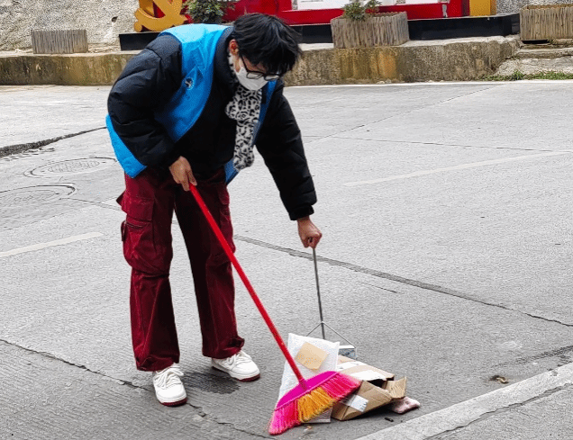 活动前期,学院党总支副书记石海带队与社区党支部进行了充分沟通调研,根据社区提出的志愿服务需求,学院团总支甄选了46名团员和青年志愿者,进行了反诈知识和消防安全知识培训。活动过程中,团员青年们穿着蓝色志愿者马甲,带着宣传资料和卫生清扫工具,沐浴着冬日午后的阳光,井然有序地朝目的地行进,在行进过程中不忘向过往人群发放反诈宣传资料;到达社区后,在社区工作人员的指挥下,志愿者们分成2组,一组负责反诈消防安全知识宣传,一组负责协助社区开展卫生清理工作。志愿者们采用现场讲解为主宣传单为辅的方式,使用通俗易懂的语言向社区居民讲解诈骗人员惯用的手段及常用的诈骗方式,提醒他们要提高警觉意识,克服“贪利”思想,不要轻易将自己或家人的信息泄漏给他人,更不要轻信中奖、“指导”汇款、涉及银行储蓄账号密码等情况的短信、电话、QQ和微信信息,遇到情况要多核实,发现诈骗苗头及时拨打110电话报警或咨询,并现场指导社区居民安装国家反诈中心APP;围绕消防安全,志愿者们从安全用火、安全用电、应急处理等方面,以生动的事例、简洁的语言普及消防安全知识,增强大家的安全防范意识,树立安全责任意识,筑牢消防安全观。在开展反诈消防安全宣讲的同时,志愿者们以主人翁责任感俯下身子、撸起袖子和社区卫生工作人员共同开展社区垃圾清理工作,为南拢社区创文创卫贡献青春力量。