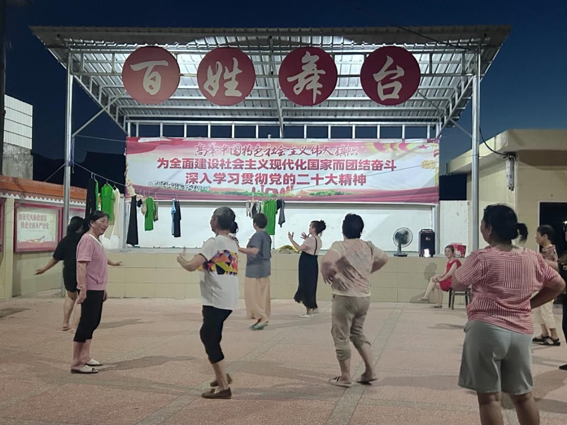 (村民在百姓舞台跳广场舞)