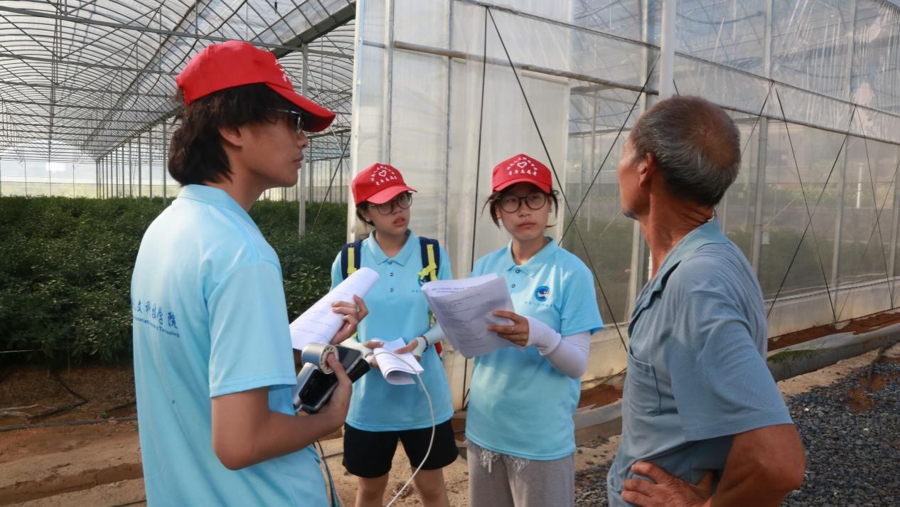 (志愿者在与农户交流)