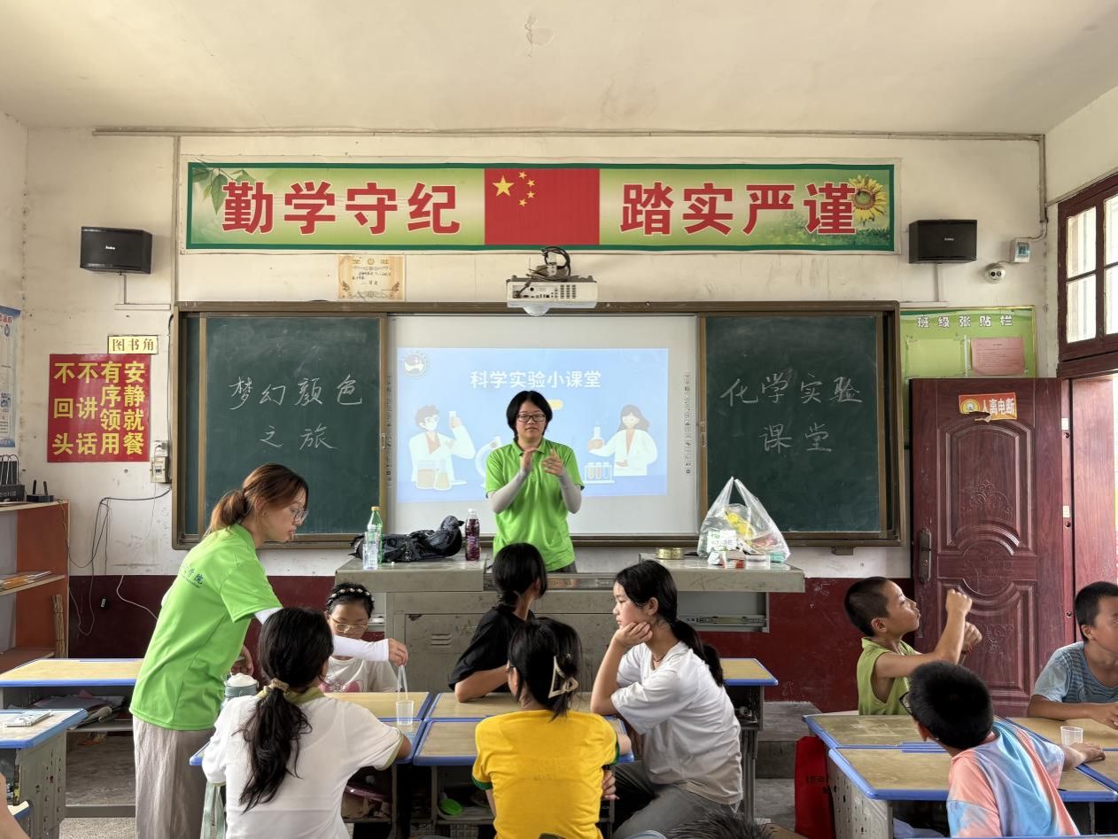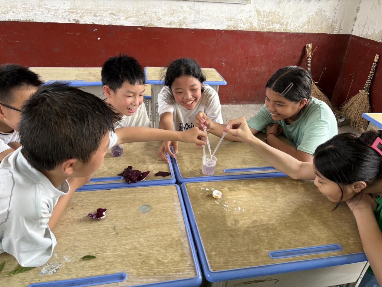 7月9日,“彩虹计划”志愿服务队的志愿者在大桥学校开设了一堂以“探究酸碱指示剂”为主题的科学实验课。志愿者指导学生进行实践操作,探究酸碱反应的基本规律,并巧妙地将科学原理与健康生活、环境保护理念相结合。