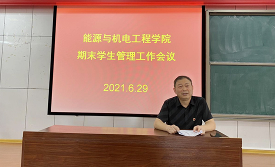 为进一步加强学生管理,增强学生安全防范意识,保障学生生命安全和身体健康,确保期末和暑假期间学生教育管理工作安全稳定。6月29日上午,能源与机电工程学院在同德楼601室召开了期末学生管理工作会议。学院党总支书记谢常清、党总支副书记石海、副院长伍铁斌以及全体辅导员、班主任参加了会议。