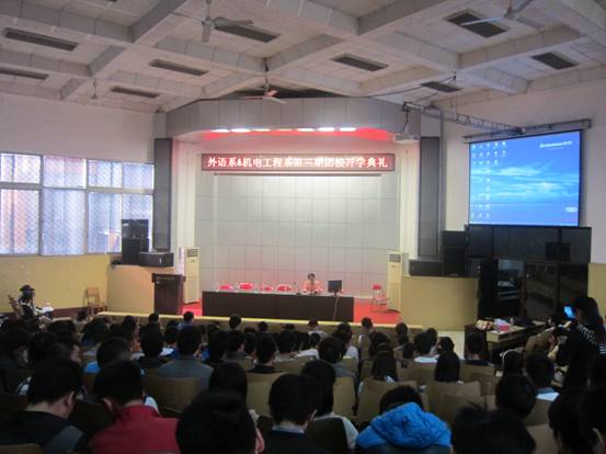 2013年10月27日,外语系与机电工程系在匠成楼报告厅举行了第三期团校开学典礼。校团委书记谢柳、机电工程系党总支书记谭甲凡、外语系党总支书记胡瑾、校团委副书记魏彦煜、机电工程系党总支副书记刘宗良、外语系党总支副书记刘莉等领导和老师出席,外语系团总支书记龙立平主持大会。