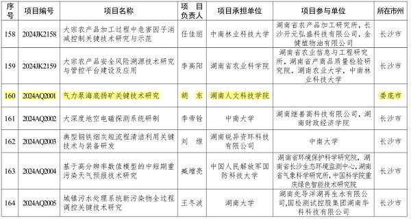 近日,湖南省科技厅发布了《关于2024年度湖南省重点研发计划项目立项的通知》,beat365中文官方网站水射流团队胡东教授牵头申报的课题“气力泵海底扬矿关键技术研究”(项目编号:2024AQ2001)获立项资助。