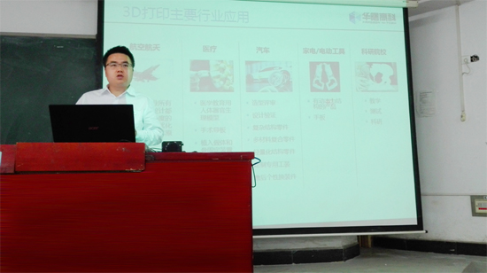 2016年5月21日在致远楼301室,湖南省激光增材制造工程技术研究中心陈勃生教授3D打印科研团队一行受邀参加了beat365中文官方网站《教授博士》论坛,团队成员边宏高工为能源与机电工程学院材料成型、机械专业的二百余师生带来一场题为《3D打印成型技术、设备的发展及应用》讲座,学术讲座由材料成型及控制工程专业负责人谭峰亮博士主持。
