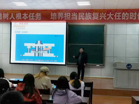 11月11日晚,湘潭大学林启权教授在同德楼601为能源与机电工程学院省一流专业材料成型及控制工程2021级新生上了主题为“固态金属塑性成形”的专业导论课,材控教研室全体教师参加。