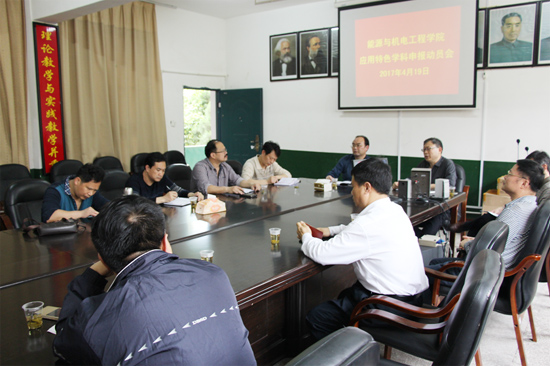 4月19日下午,党委委员、组织部金志方部长率科研处处长彭秧锡、校地校企合作处处长黎建辉来能源与机电工程学院参加党政联席扩大会议并指导学科建设和校地校企合作工作。