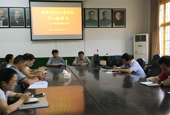 ,能源与机电工程学院党总支在若谷楼205组织开展了中心组学习(扩大)会议,学院党政领导、党总支成员、院中层单位负责人参加,学习主题为“党风廉政建设”专题学习。