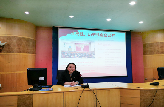 谢柳指出,党的十九届五中全会审议通过的《建议》,是中国未来五到十五年的发展蓝图,是夺取全面建设社会主义现代化国家新胜利的纲领性文件。她围绕“《建议》的起草主要把握了五条原则”“《建议》的逻辑主线与主题”“《建议》的突出特点和突出亮点”“《建议》的主要内容为15部分三大板块”“《建议》核心要义体现在三个‘新’”等五个方面,对党的十九届五中全会精神进行全面宣讲和深入解读,深化师生对党的十九届五中全会重大意义的充分认识、对习近平总书记重要讲话精神实质的深入领会。