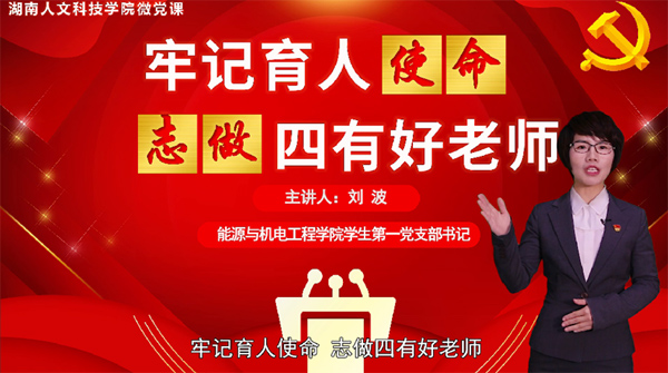 近日,学校公布了“党课开讲啦”活动评选结果,我院学生第一党支部书记刘波老师主讲的党课《牢记育人使命,志做四有好老师》荣获一等奖。